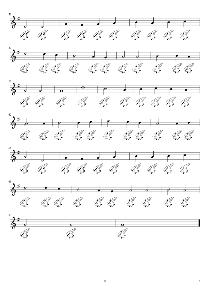 Partitura para ocarina de 12 agujeros:
