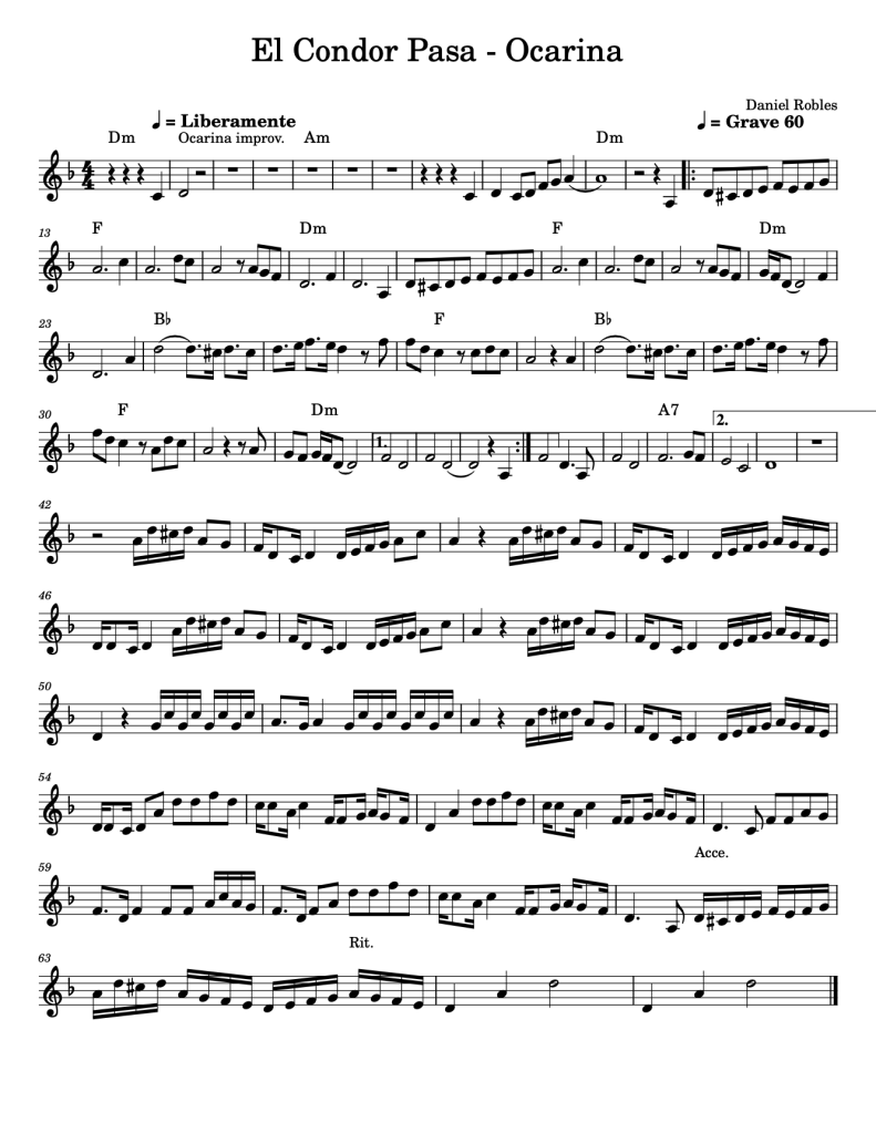 Partitura para ocarina de 6 agujeros: